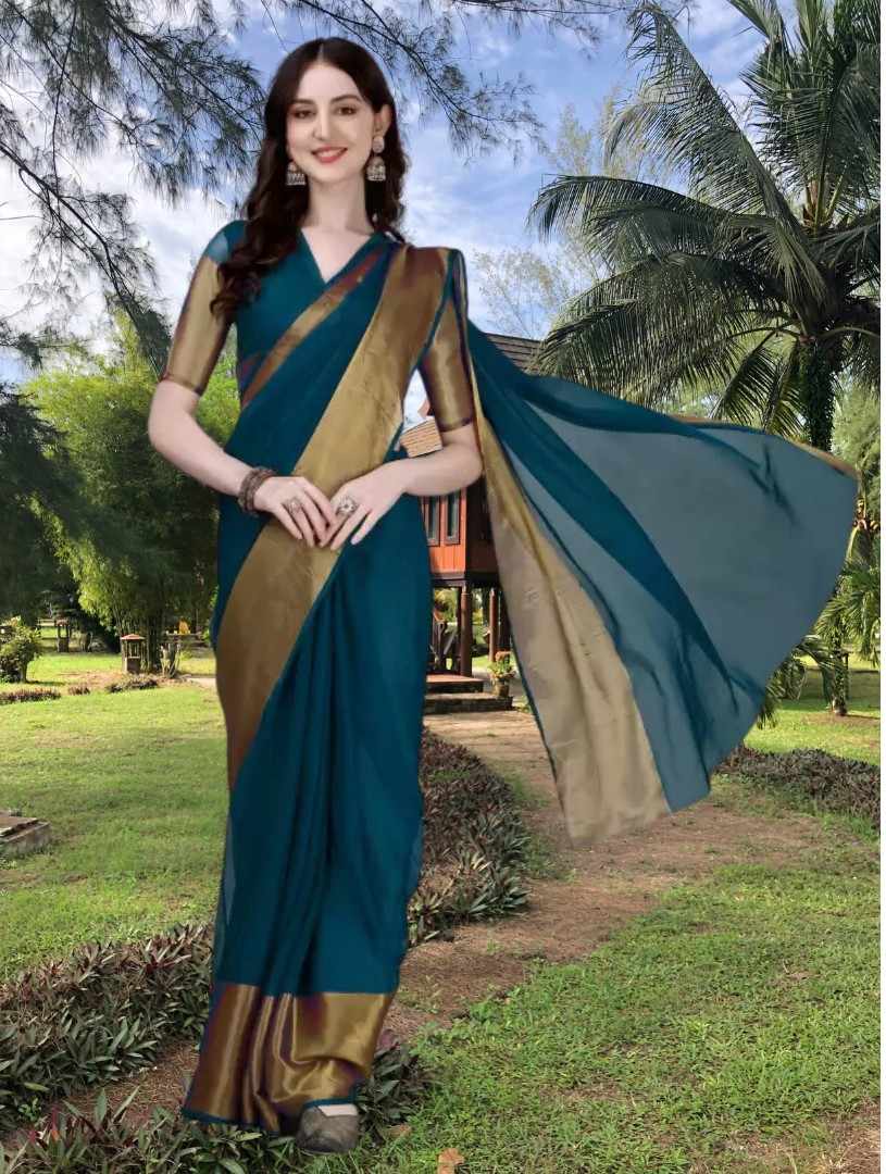 Name : | S4s petrol Blue Running Saree |